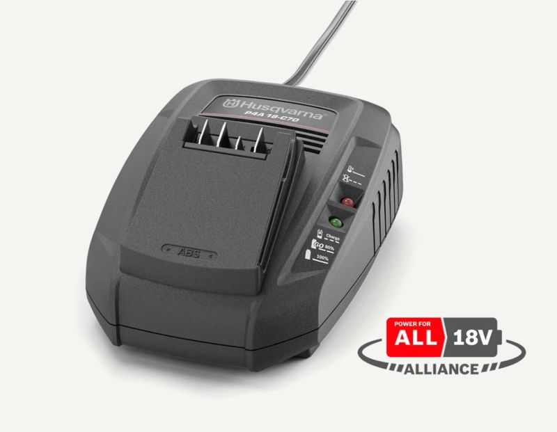 Компактното зарядно устройство Husqvarna Aspire е съвместимо за зареждане, както на батерии Husqvarna Aspire, така и на всички 18V батерии в системата POWER FOR ALL ALLIANCE. За бързо зареждане и с LED индикатор, за нивото на зареждане.